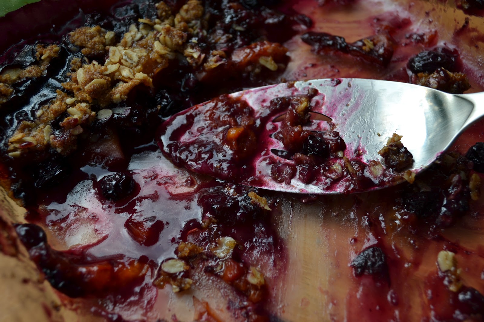 The recipe for the topping is loosely adapted from a crisp recipe from this recipe from Nourish Your Roots. It's bonkers good. So good that my sister and my two little nieces ate the whole pan for breakfast within a half hour of coming out of the oven. Yeah, we all burned our tongues on scalding hot blueberries, but it was oh so worth it.
